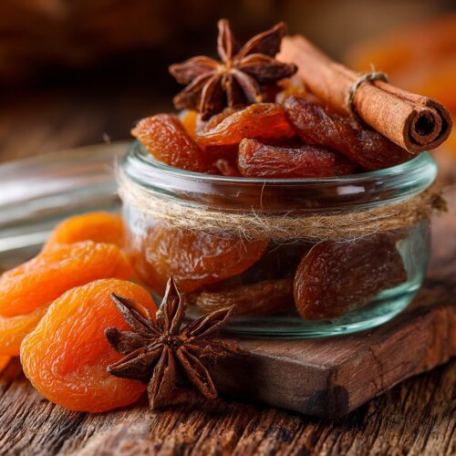 Place the dried apricots, cinnamon sticks, and star anise in a heat-safe bowl or container.