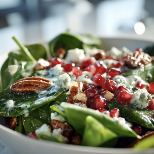 Spinach, Blue Cheese, Toasted Pecans & Pomegranate Salad