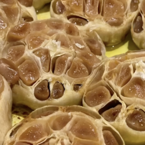 Roast for 45–55 minutes, until the cloves are golden, soft, and easily pierced with a knife.